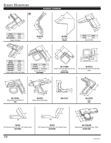 90M-560BZ Bronze 90-955SND Sandstone Screen Corner with Slide and Lift Tab. Pull Tab Outside Corner Key with Stop.