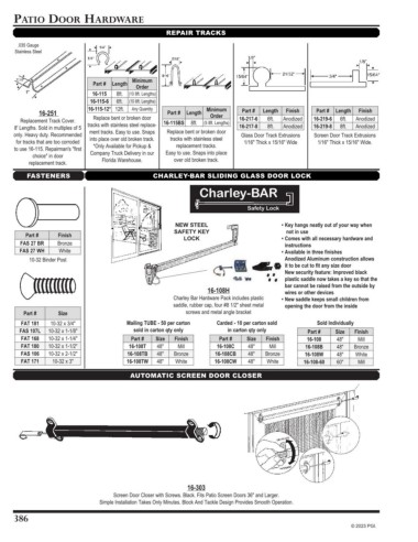 FASTENERS CHARLEY-BAR SLIDING GLASS DOOR LOCK