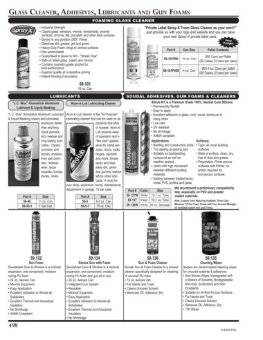 Glass Cleaner, adhesives, lubriCants and Gun Foams
